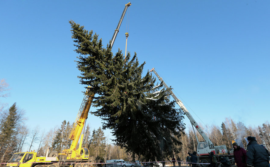 На соборной площади Кремля установили главную новогоднюю ель, которую спилили накануне в Московской области на территории Истринского лесничества.
